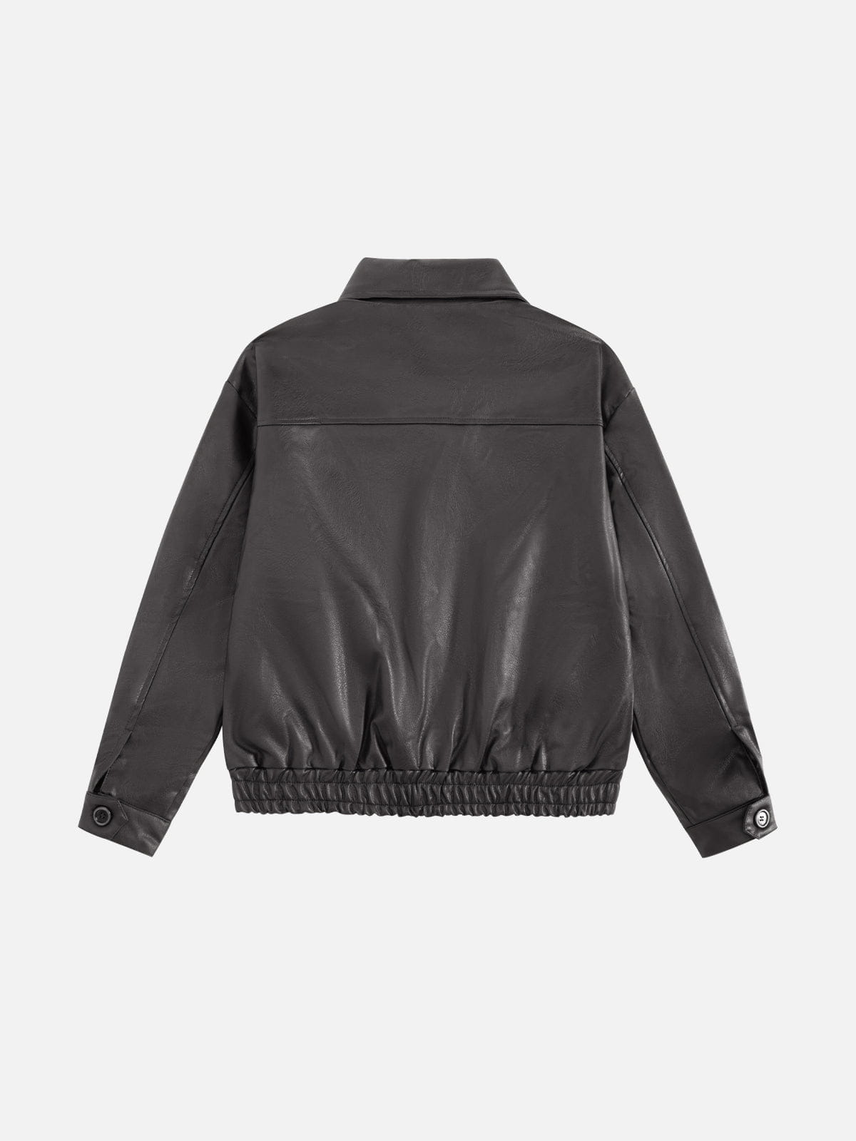 This faux leather jacket stands out with its asymmetric zip design and clean panel lines, offering a modern take on a classic staple. The supple material and structured shape provide a refined texture, while the adjustable hem enhances comfort and flexibility. A sharp everyday layer with just the right amount of edge.
