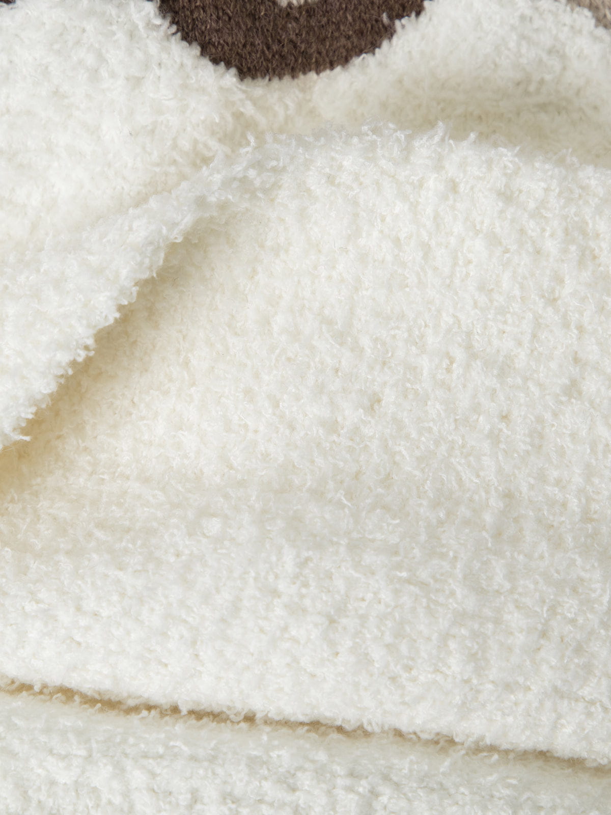 This knit sweater features a front bear motif depicting two bears wearing winter accessories. The motif is formed through integrated knit construction, with varied stitch textures creating contrast across the surface. The design is centered on the body and finished with a crew neckline, ribbed cuffs, and a ribbed hem.