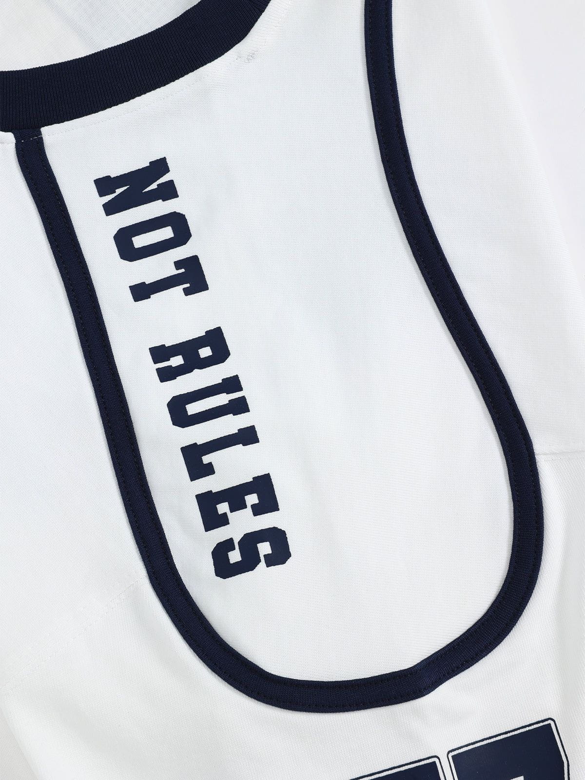 Clothing details: Patchwork, Mesh, Number Graphic Focus, Ribbed Edges.