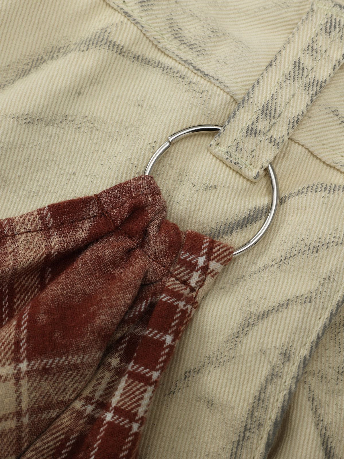These baggy-fit jeans feature a unique curved cut and a waistband-inspired hem detail at the cuffs, blending structure with creativity. The innovative design brings a fresh, fashion-forward twist to a classic silhouette. Paired with a red checkered Kerchief, it creates a striking look that’s anything but ordinary.