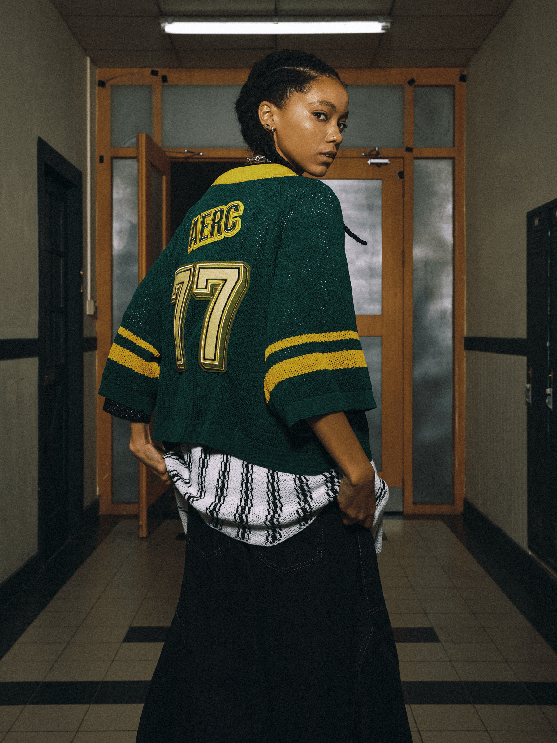 Clothing details: 77 Graphic.