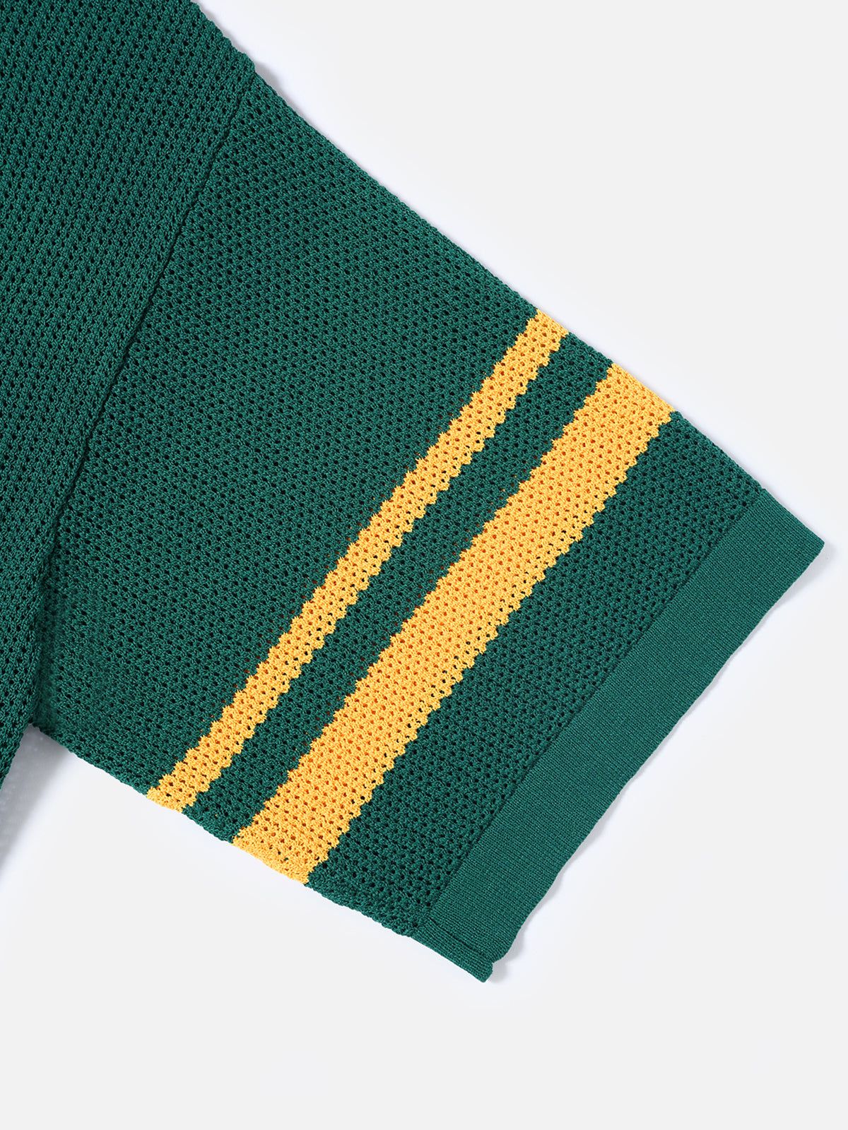 Bright yellow meets deep green in a striking contrast that captures the energy of a sunny field — fresh, natural, and full of life. The breathable knit fabric with stretch-enhancing perforations offers freedom in every move, while the V-neck adds a touch of effortless ease.