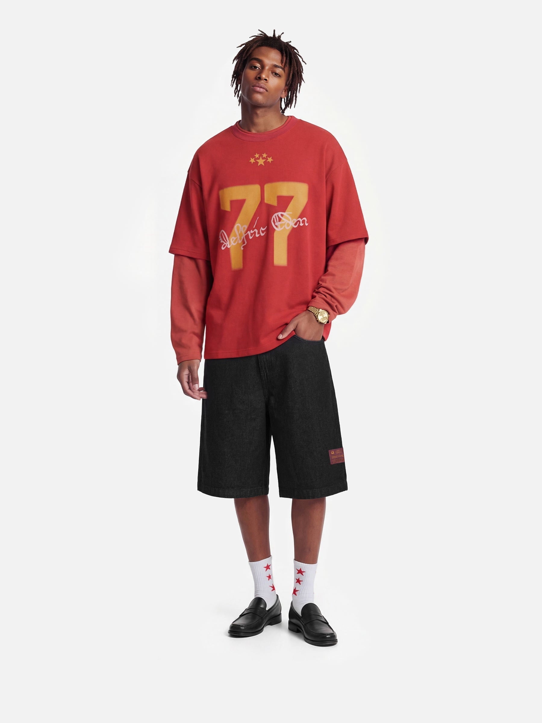 Finished with a washed surface, these jorts feature a clean, structured look with subtle depth in tone. Designed with a classic five-pocket construction, they offer an easy fit and versatile styling for everyday wear across seasons.