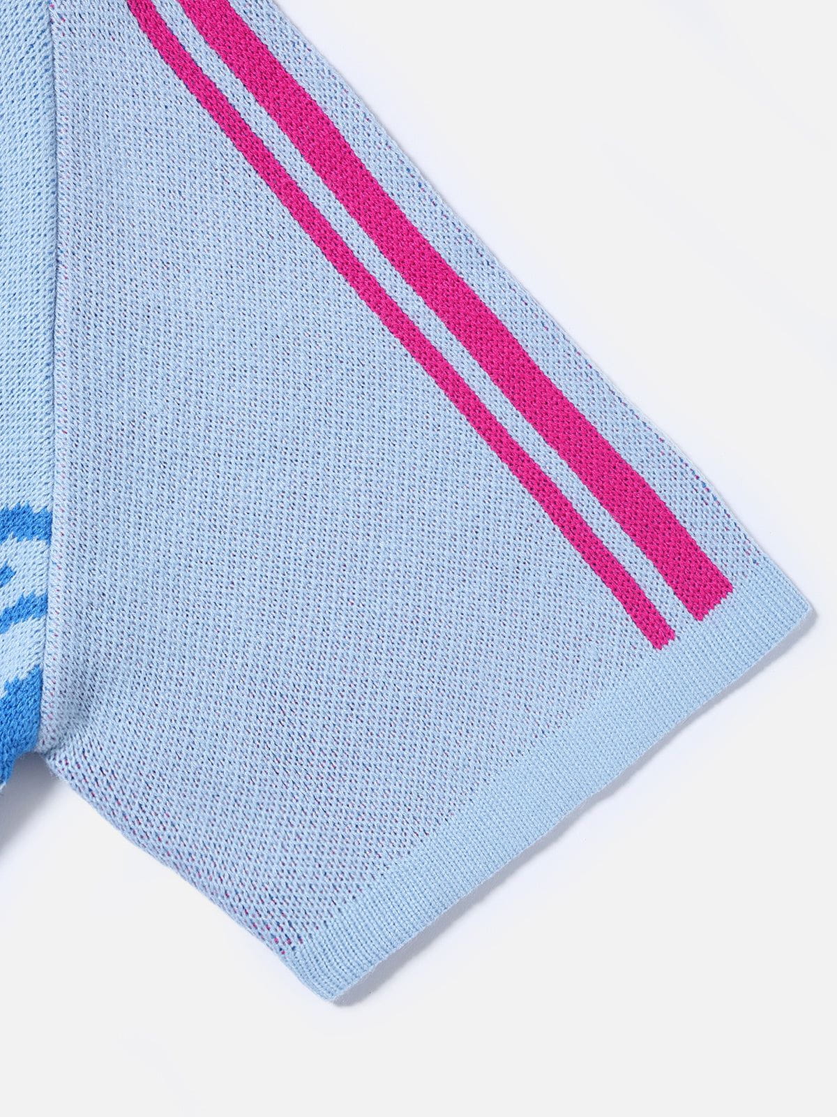 Ride the wave of bold street style with this Wave Graphic Boxy Knit Jersey. Designed with a relaxed silhouette and standout graphics, this tee features a retro "77" varsity number layered over an abstract wave-inspired print, blending coastal energy with athletic flair.